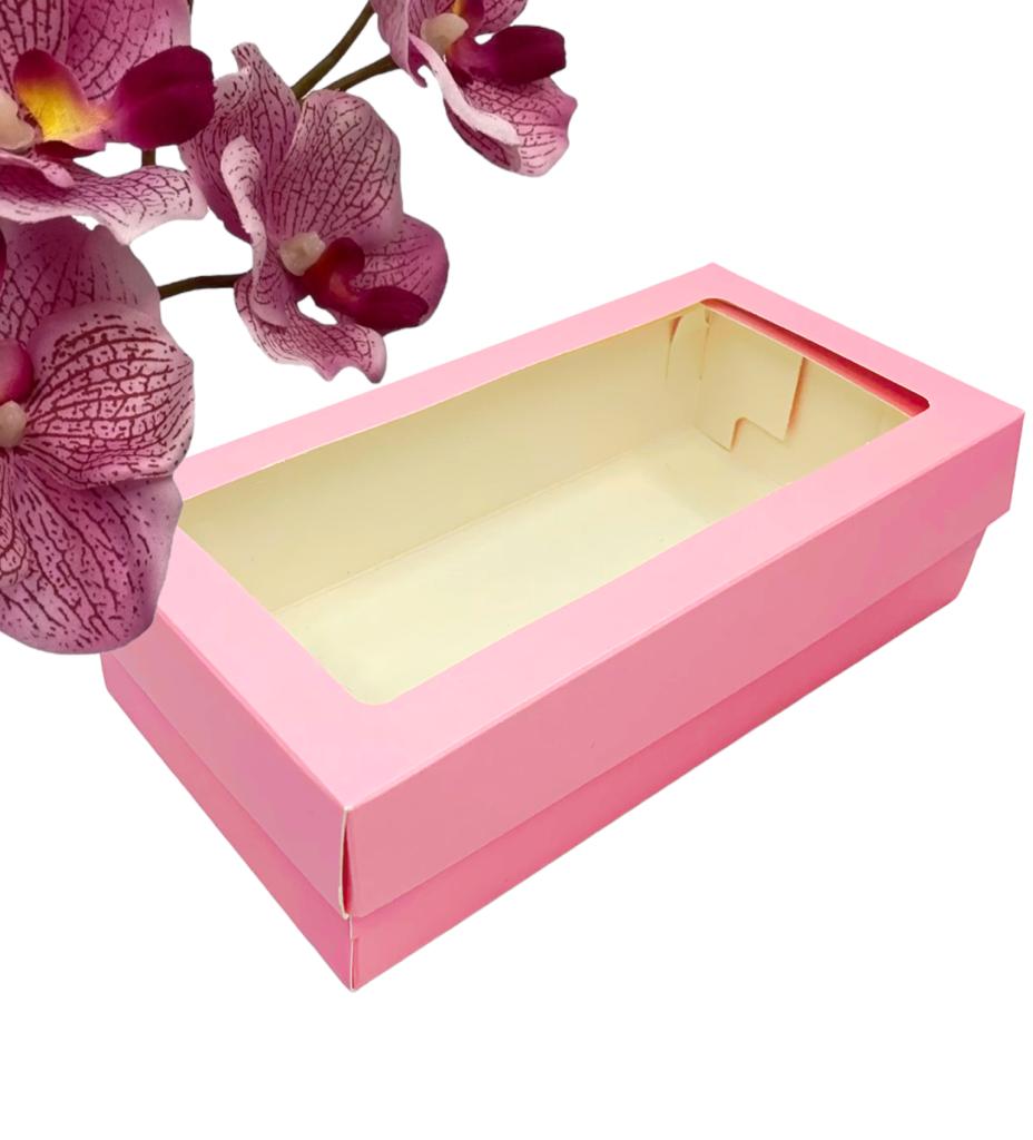 Коробка 210*110*55м для макарон и др. кондитерской продукциис ПРЯМОУГОЛЬНЫМ окошком  (розовая матов)
